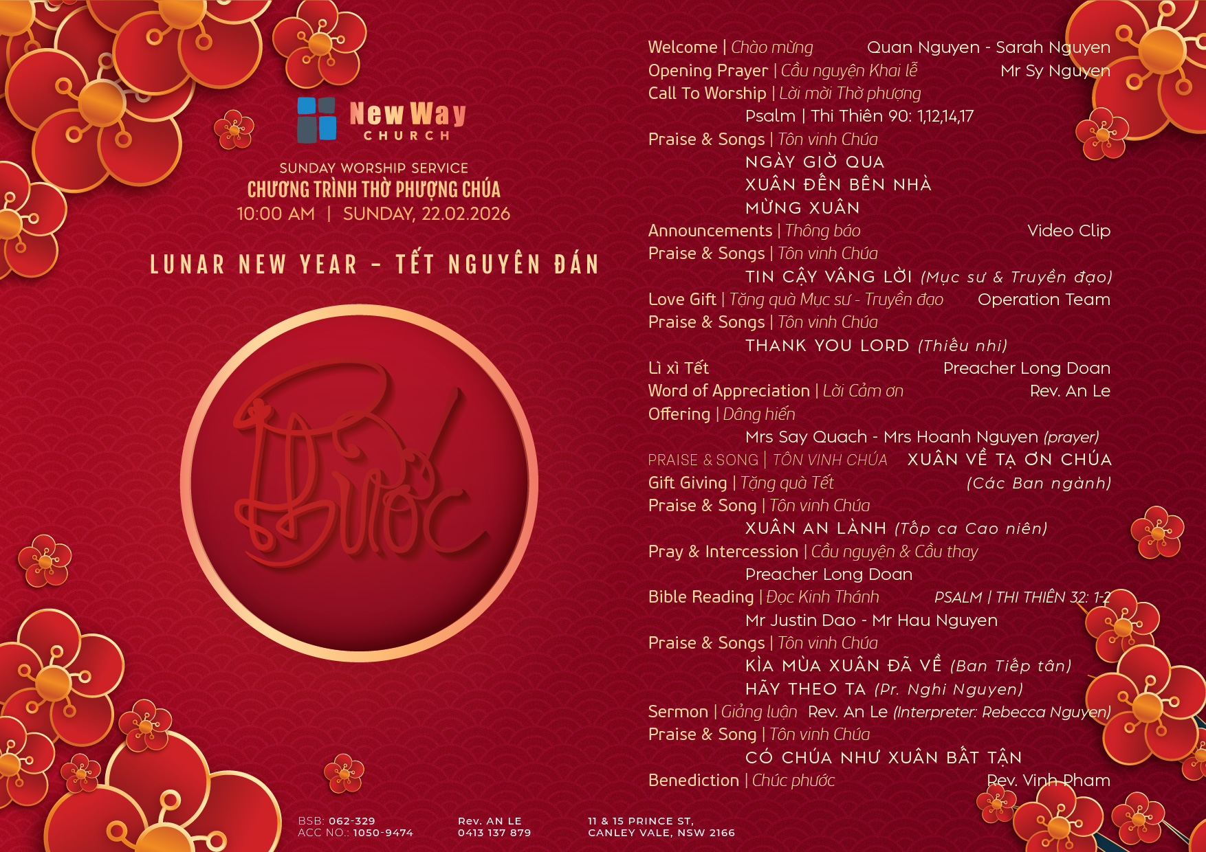 Chương trình Thờ phượng – Chúa nhật 15.02.2026 | Tết Nguyên đán – Phước