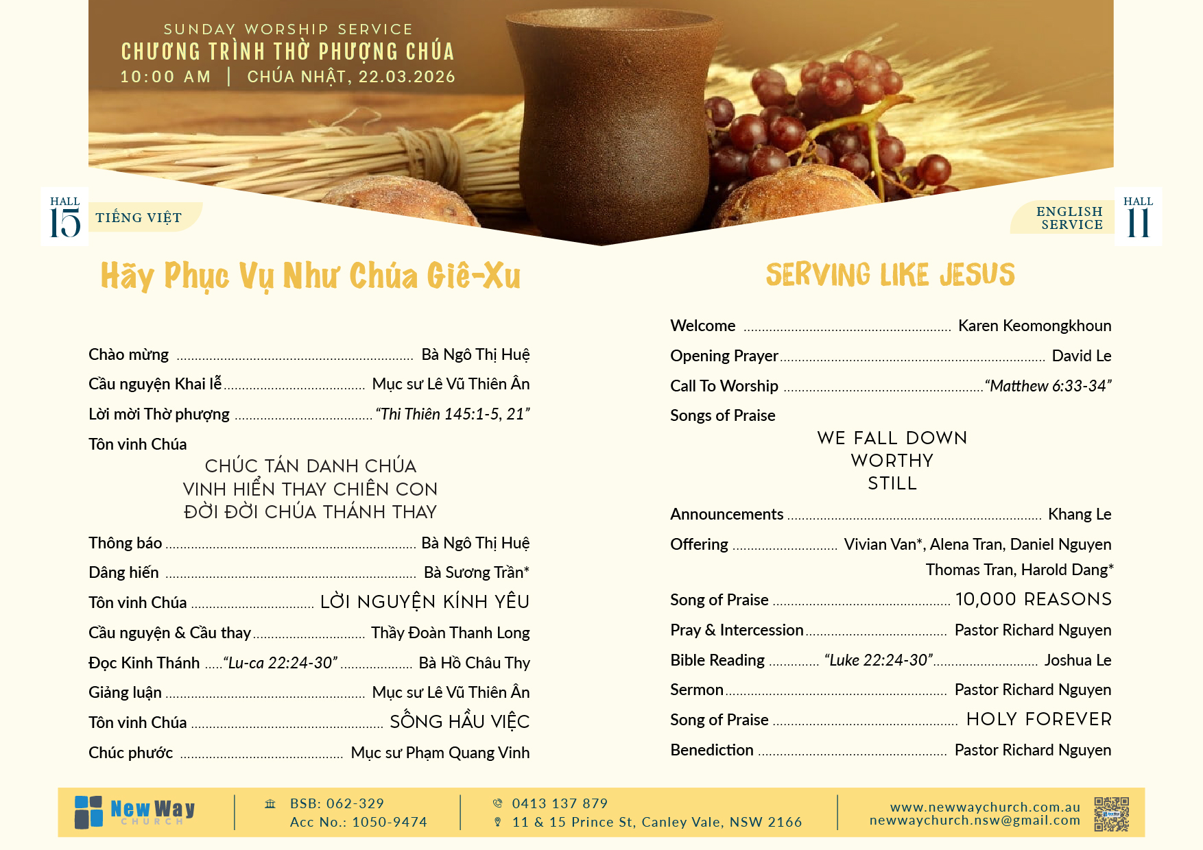 Chương trình Thờ phượng – Chúa nhật 22.03.2026 | Serving Like Jesus